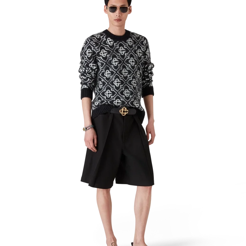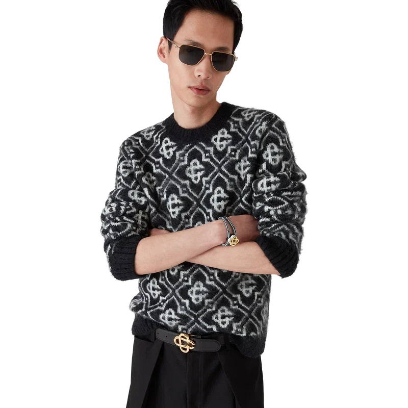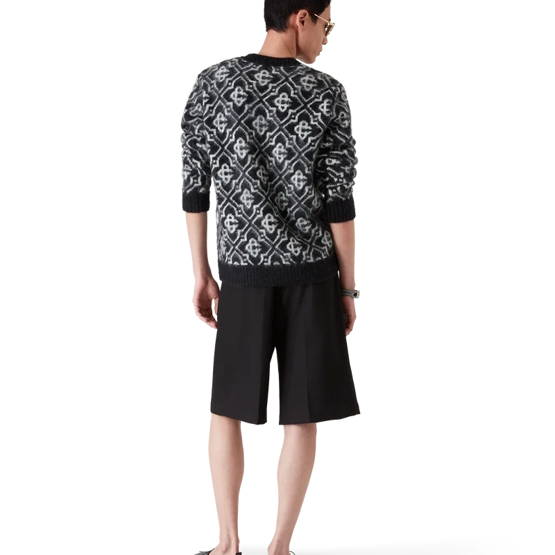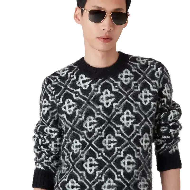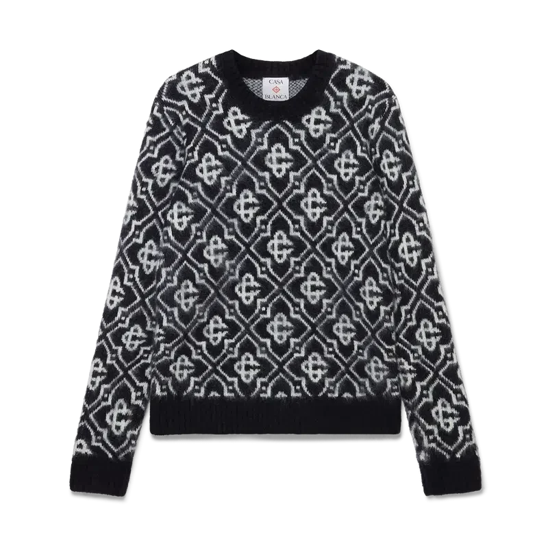Monogram Mohair-genseren er en langermet genser med Monogram-design, laget av mohairstoff. Den har ribbestrikkede mansjetter og nederkant i kontrastfarge, samt en klassisk rund hals.