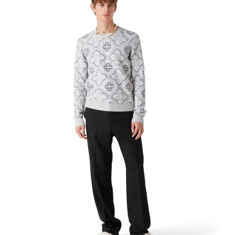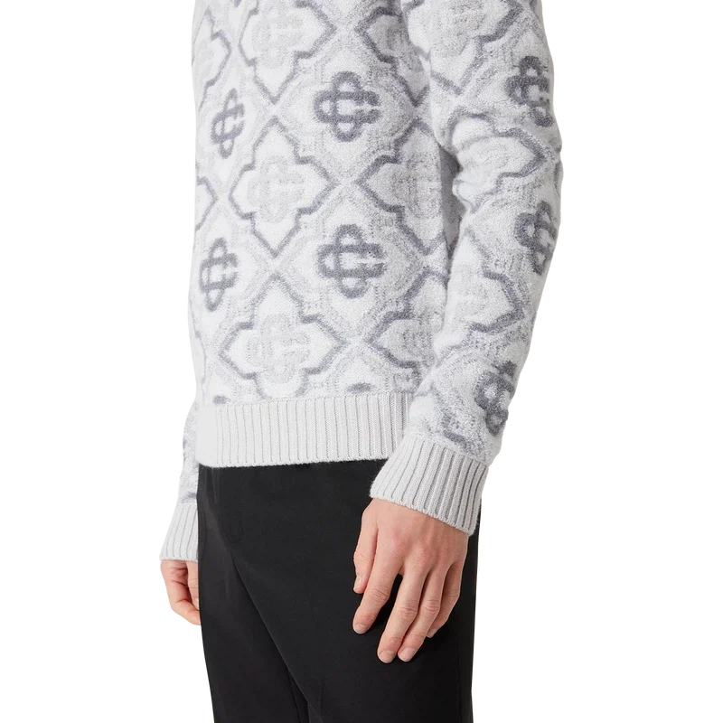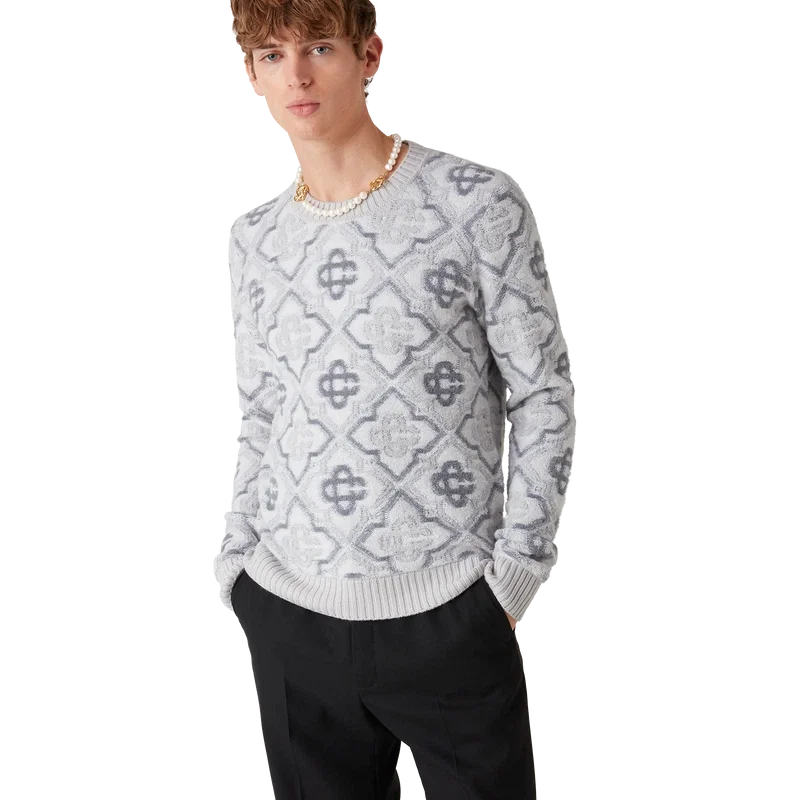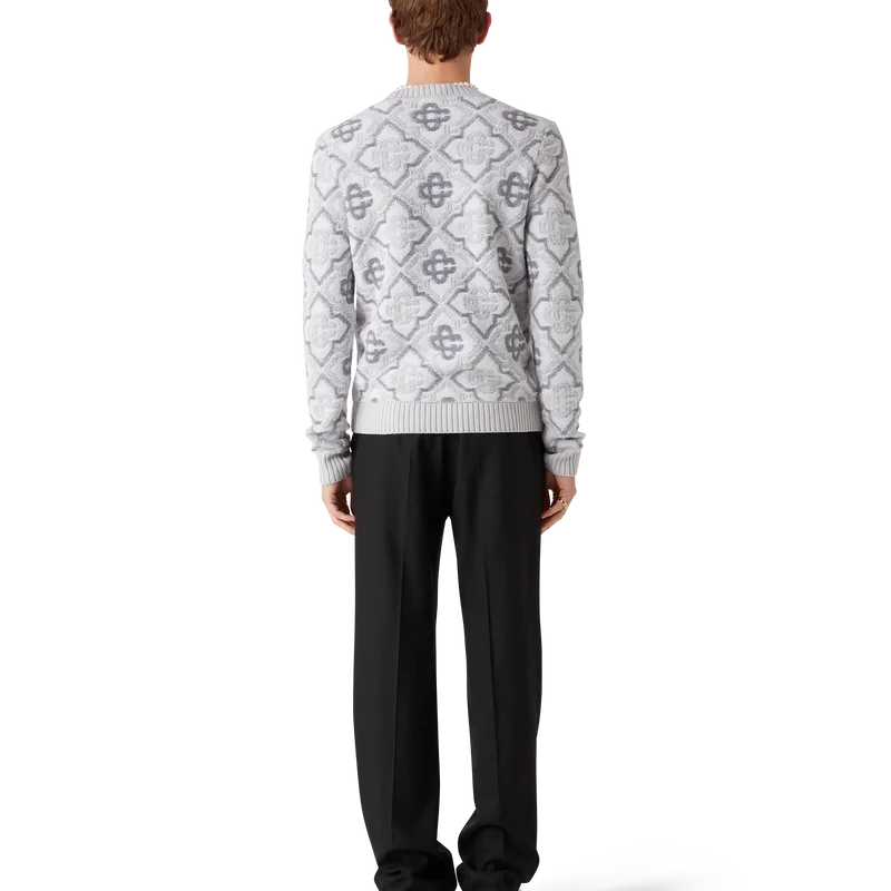 Monogram-strikkegenseren er et klassisk design med husets signaturmonogram, laget av et ullblandingsstoff. Fullført med klassisk ribbet rundhals, mansjetter og kant.