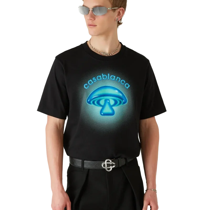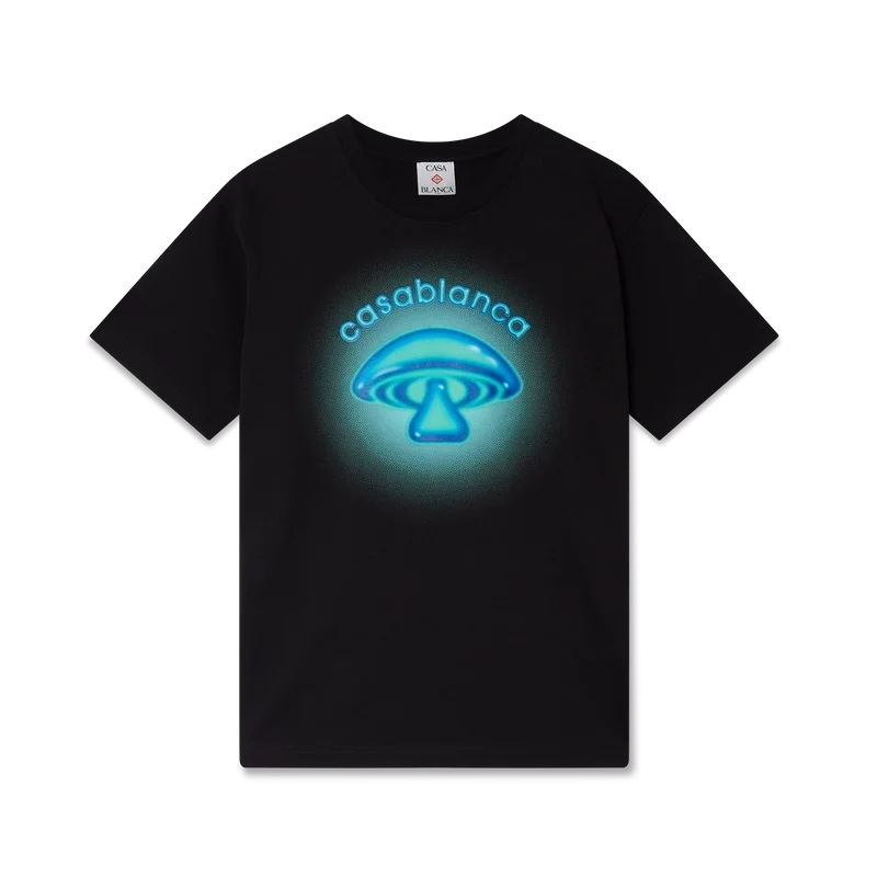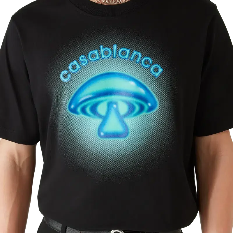Airbrush Mushroom Logo T-skjorten er et raffinert kortærmet design med trykk som bygger på våre tidligere eksperimenter med airbrush-teknikken, og et av husets designelementer – soppen. Fullført med en klassisk rund hals.