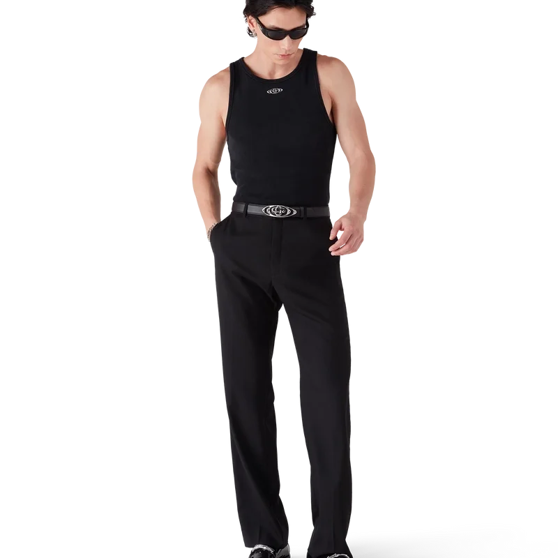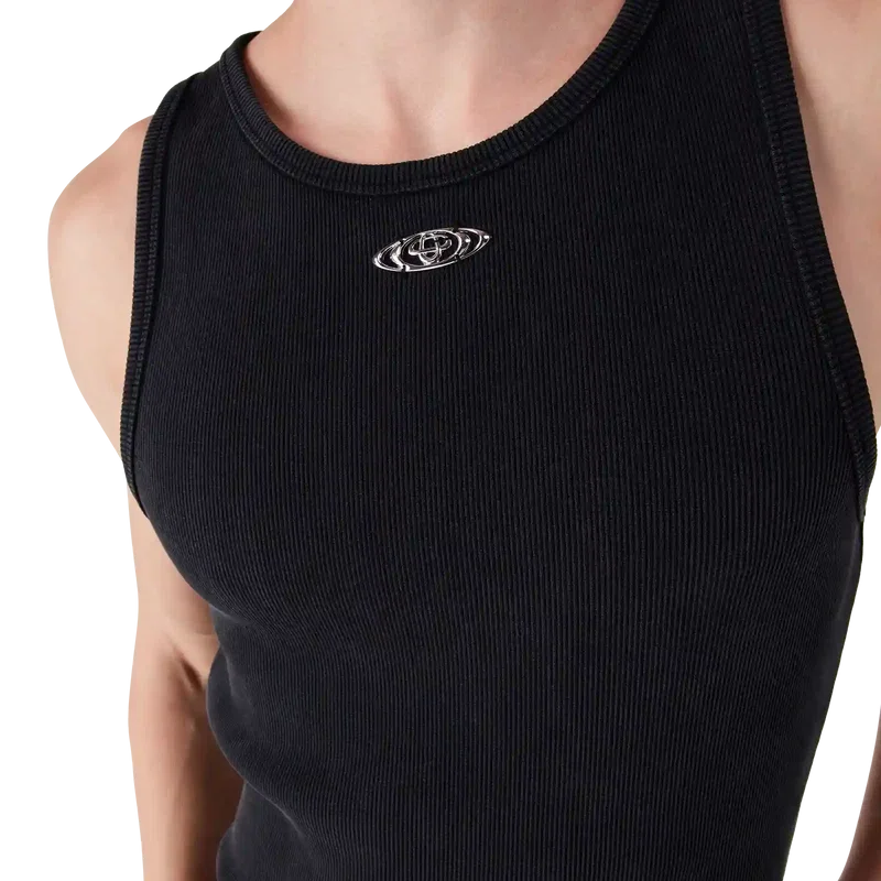 Den falmede ribbede tank-toppen er et ermeløst design med husets Warped-logo i midten. Fullført med rund hals og ribbet hals og ermhull.