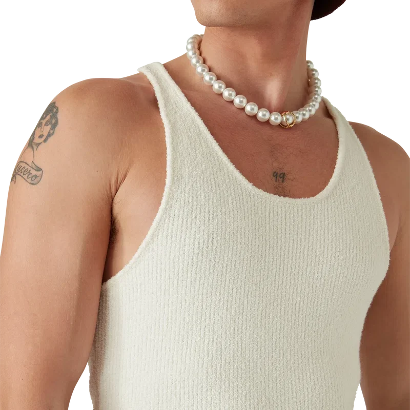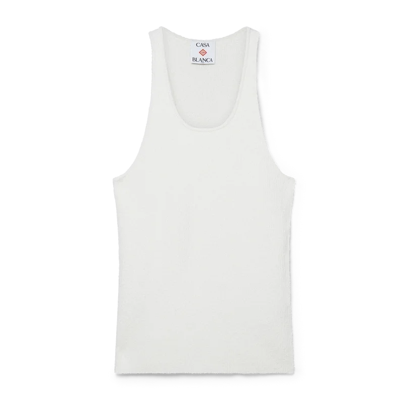 Boucle Rib Vest er en ermeløs vest med strukturert design, laget av et bouclé-blandingsstoff. Fullført med rund hals og racerrygg med husets signaturdiamantlogo.