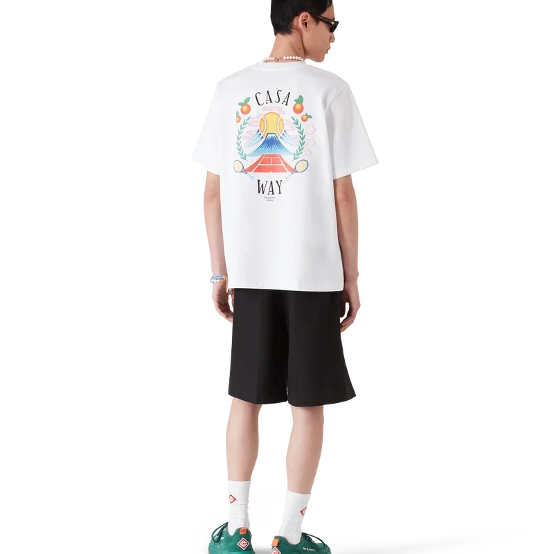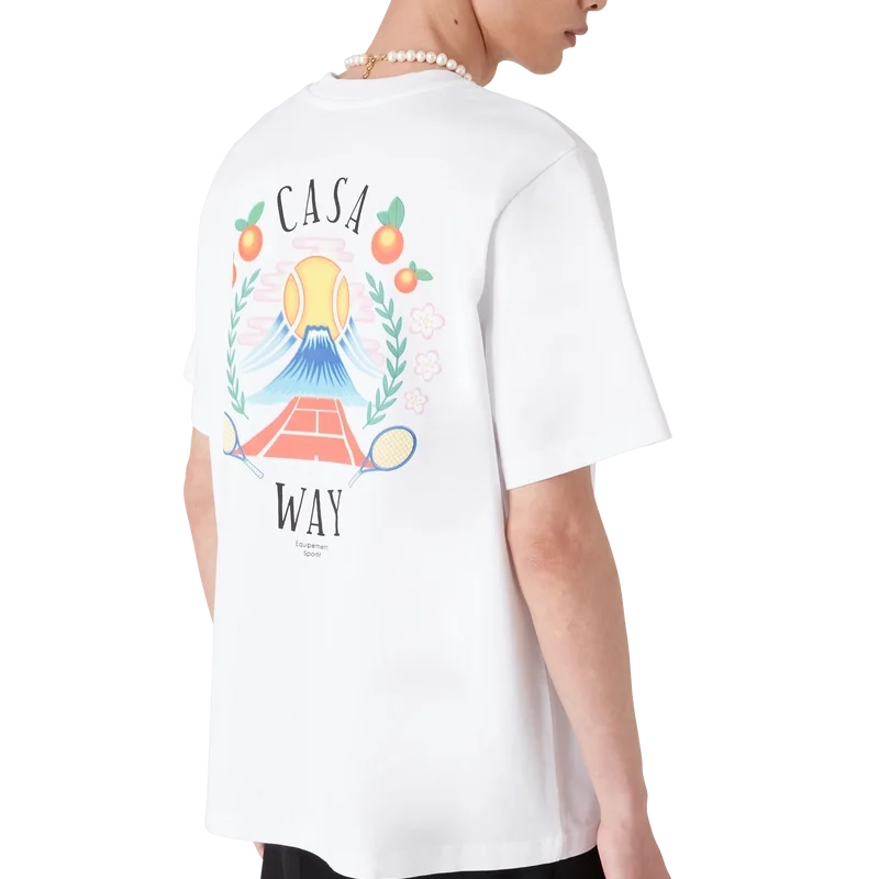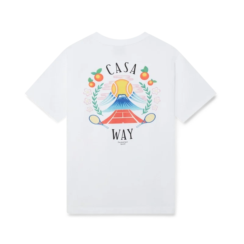 Casa Way Mountain T-skjorte er en kortærmet modell laget av økologisk bomull og har husets sesongbaserte kunstverk, nyfortolket for denne sesongen. Fullført med en klassisk rund hals.