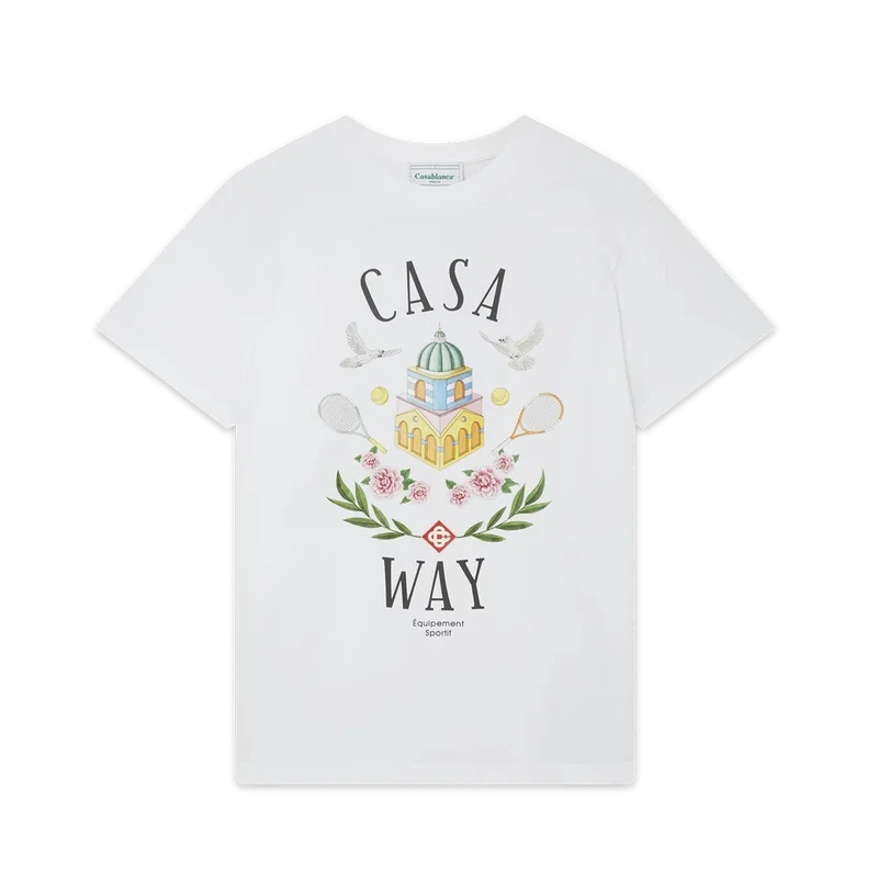 Casa Way-T-skjorten i økologisk bomull med silketrykk har en sesongbasert versjon av vårt karakteristiske Casa Way-motiv.