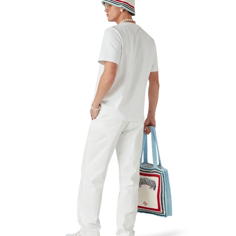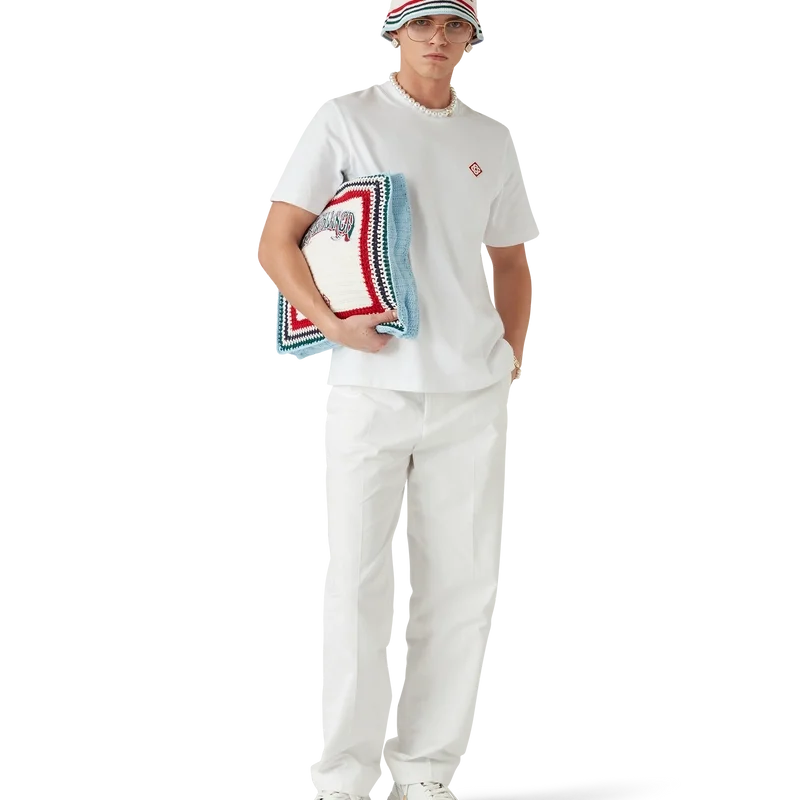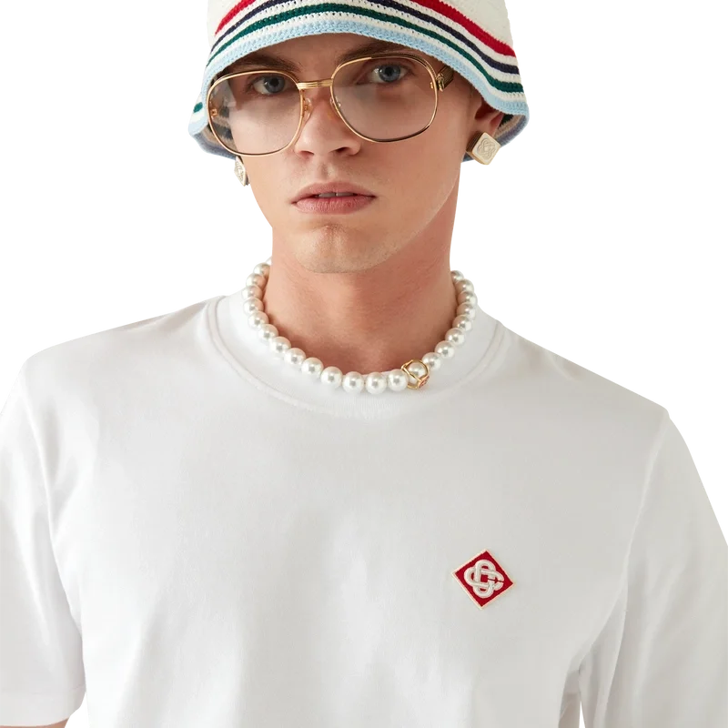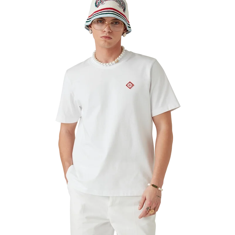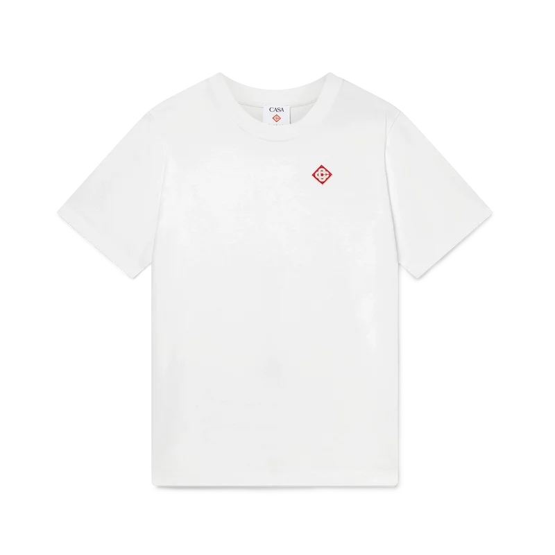 Diamond Logo T-skjorten er en kortærmet modell i økologisk bomull med husets karakteristiske diamantlogo-lapp på venstre bryst. Den har en klassisk rund hals og et Casablanca-merke.