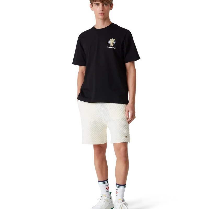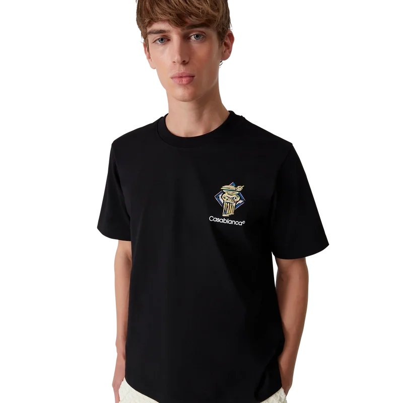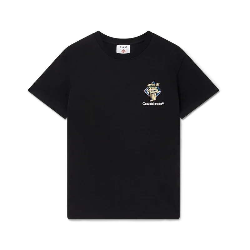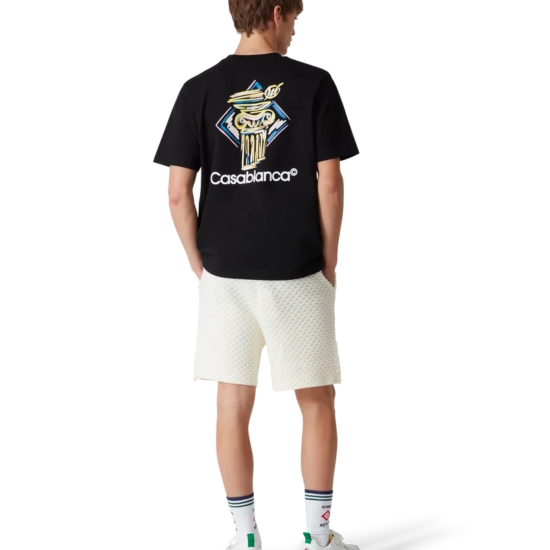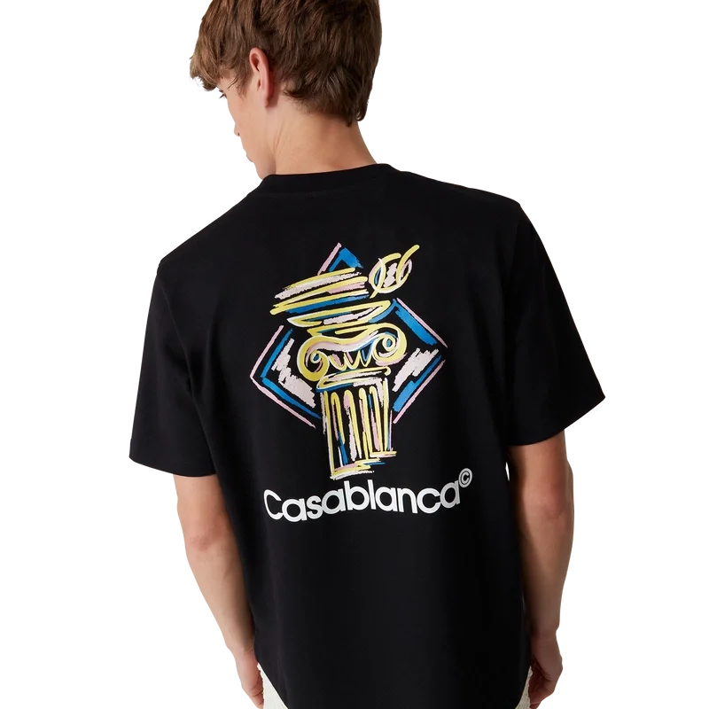 Diamond Column T-skjorten er en kortærmet skjorte med trykk, laget av økologisk bomull med husets ikoniske kritttegning av en søyle. Den har en klassisk rund hals og Casablanca-logo.