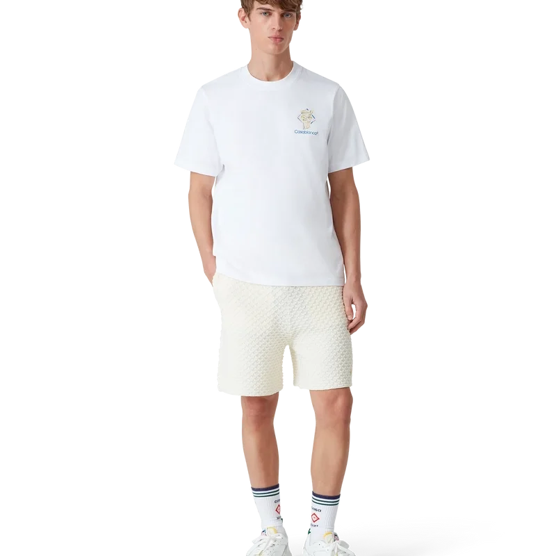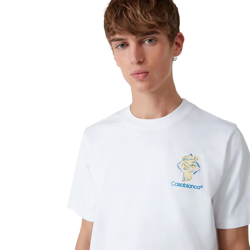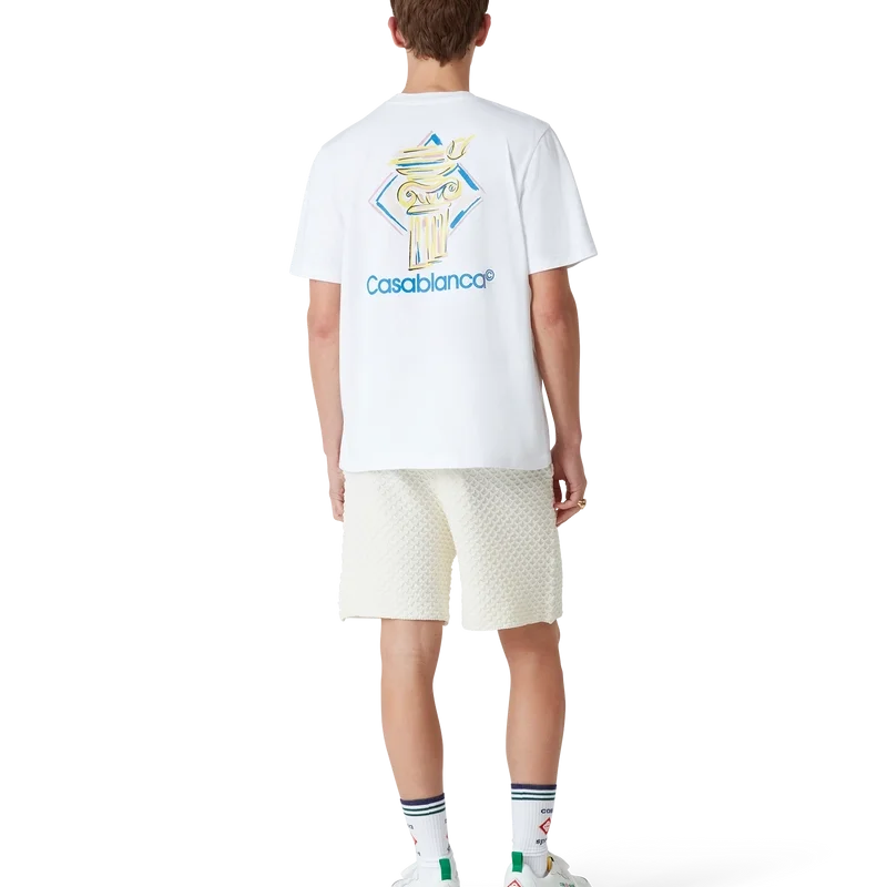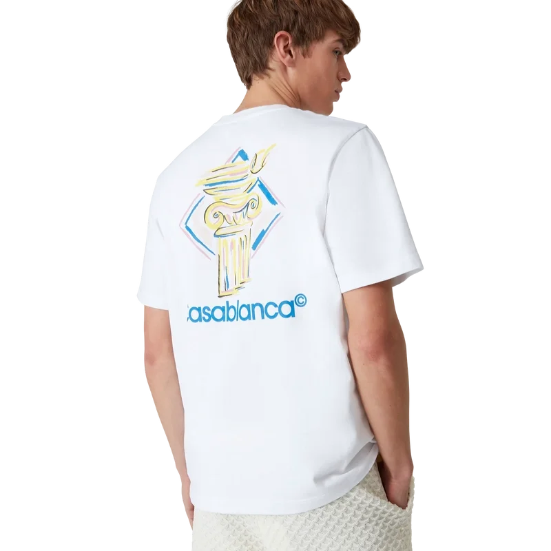 Diamond Column T-skjorte er en kortærmet T-skjorte med trykk, laget av økologisk bomullsstoff med husets ikoniske tegning av en søyle. Fullført med en klassisk rund hals og Casablanca-logo.