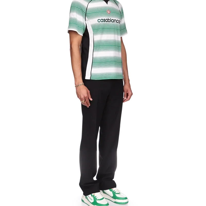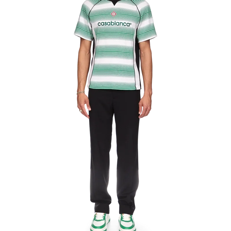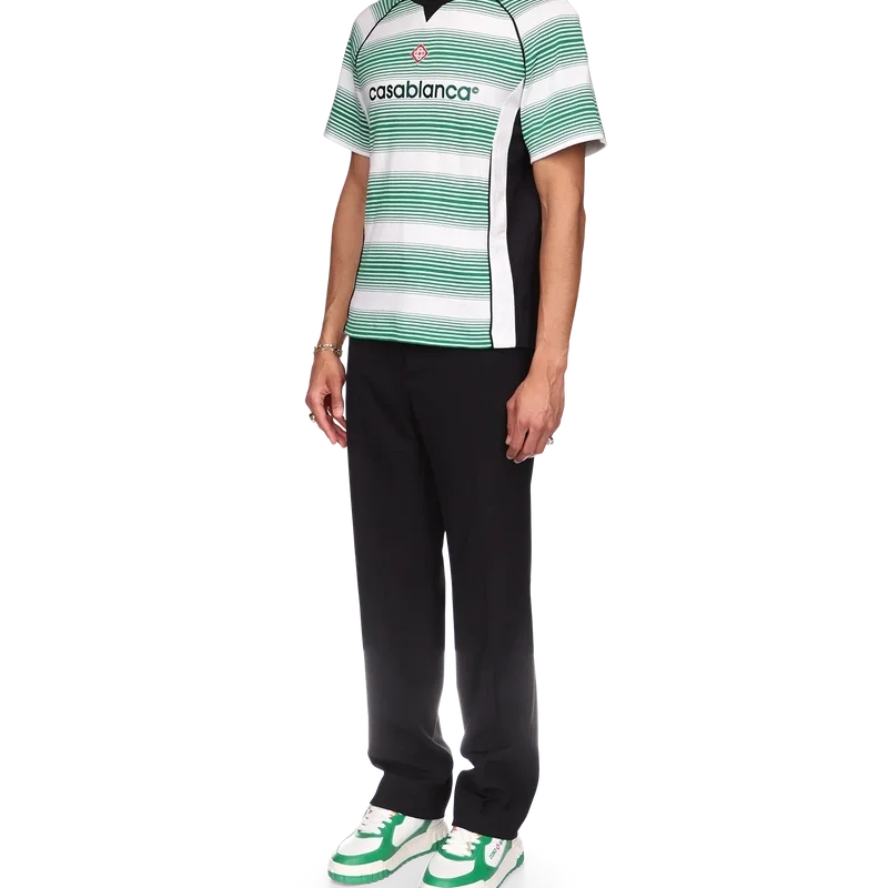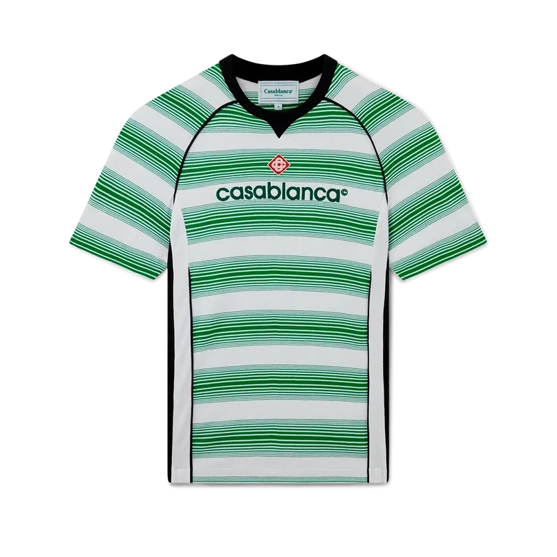 Fotball-T-skjorten med gradientstriper er et kortærmet sportstøydesign, inspirert av fargene i det nigerianske flagget. Laget av økologisk bomullsstoff og fullført med husets signaturdiamantlogo, en Casablanca-logo over brystet og en klassisk rund hals.