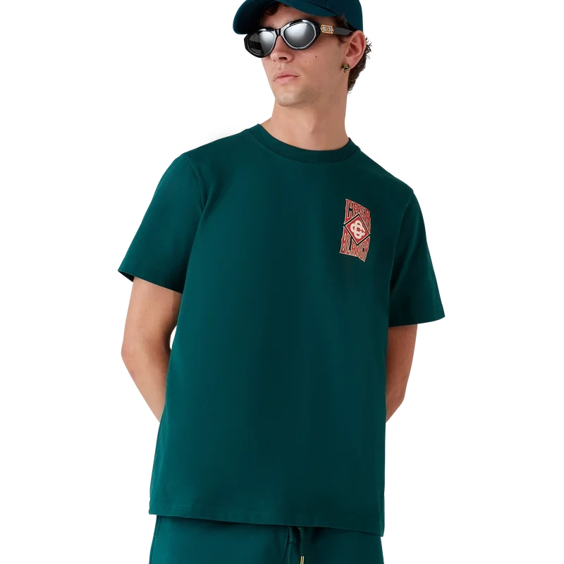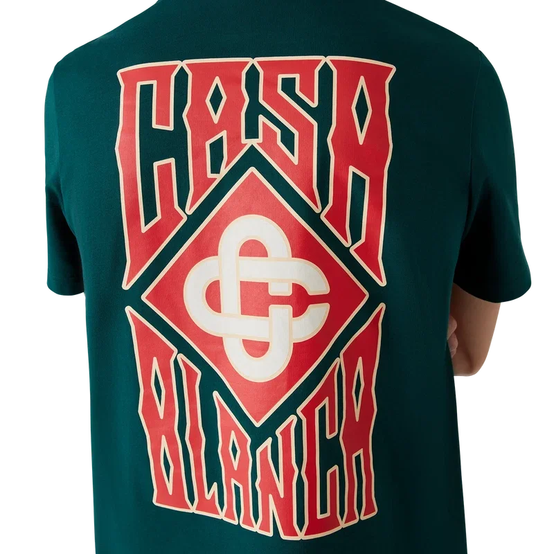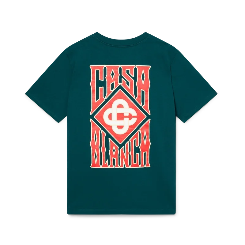 Gothic Casa Way T-skjorte er en kortærmet T-skjorte med trykk, laget av økologisk bomull, og har husets stablede logo med gotisk typografi og et karakteristisk diamantlogo. Fullført med en klassisk rund hals.