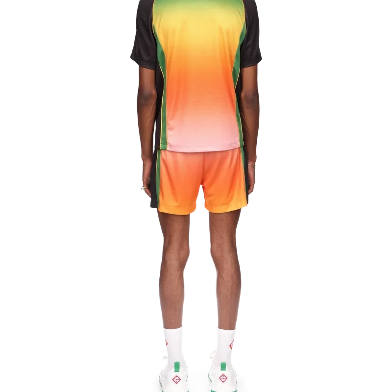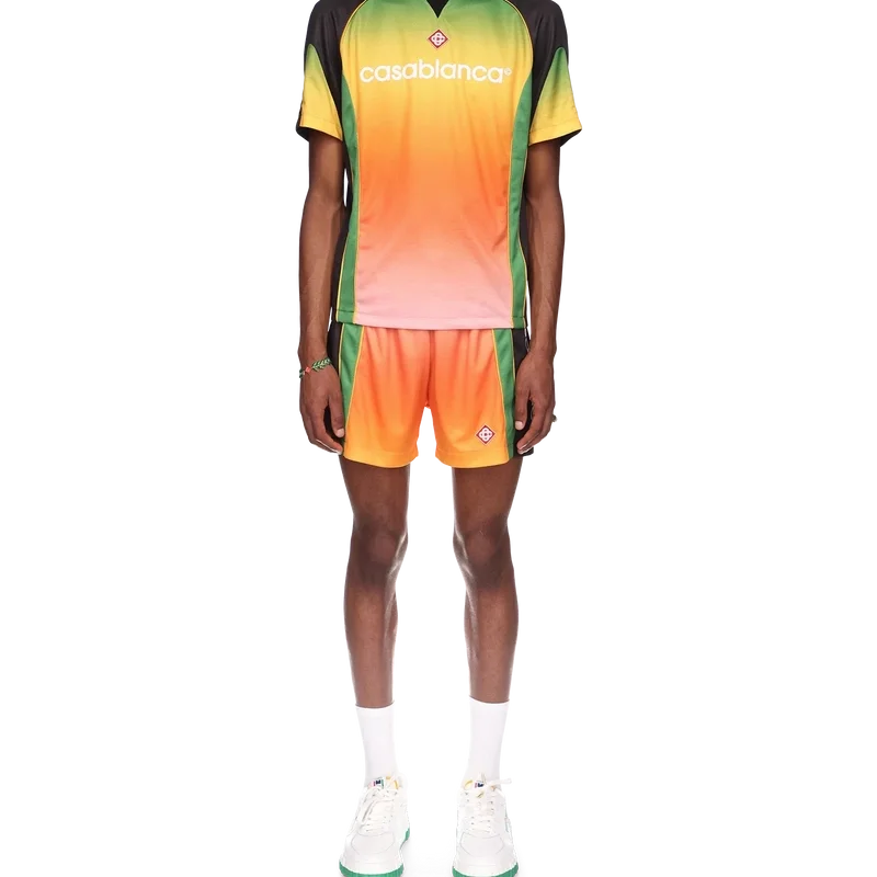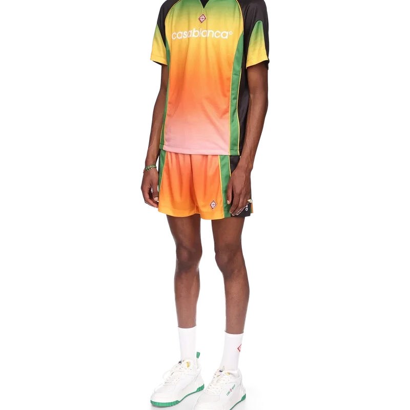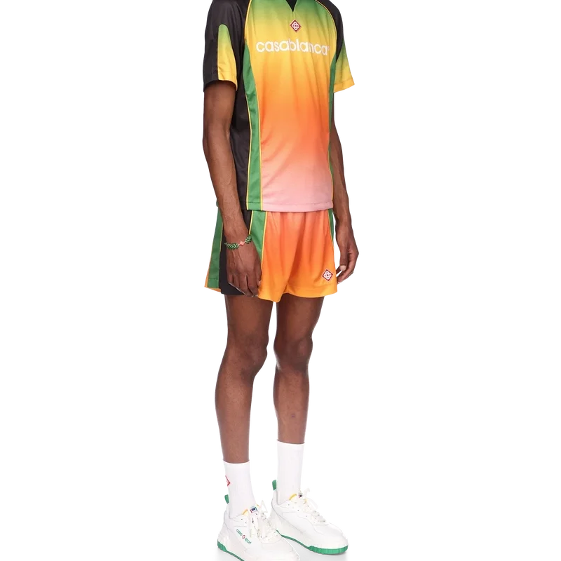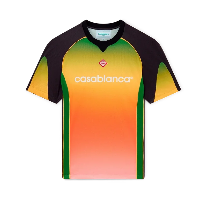 Gradient fotballskjorte er et kortærmet sportsklærdesign med en gradient av farger som representerer den rike utvekslingen på tvers av kulturelle disipliner innen afrikansk kunst, musikk og film. Laget av Birdseye Mesh og fullført med husets signatur diamantlogo-lapp og Casablanca-logo på brystet med en klassisk rund hals.