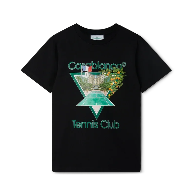 Tennis Club Icon-T-skjorten i økologisk bomull med silketrykk har en sesongbasert versjon av vårt karakteristiske Tennis Club Icon-motiv. Den har klassisk rund hals, korte ermer og Casablanca Paris-merkelapp, og er designet for en avslappet passform.