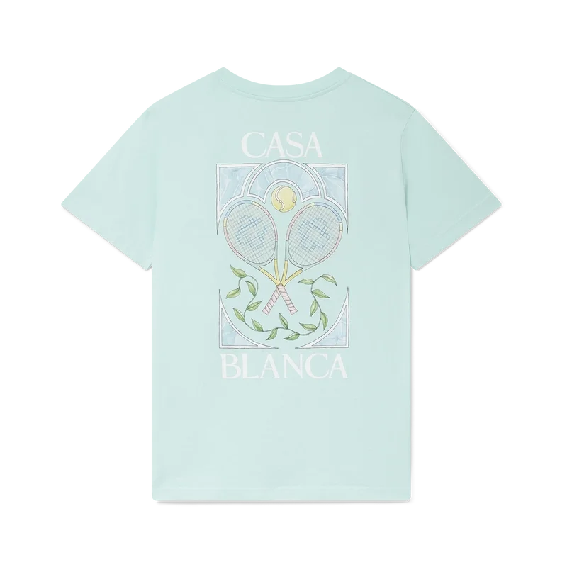 Tennis Pastelle T-skjorten er en kortermet T-skjorte med trykk, med motiv inspirert av natur, arkitektur og tennis i sesongens pastellfarger. Laget av økologisk bomull og med klassisk ribbet rund hals.