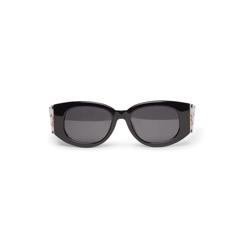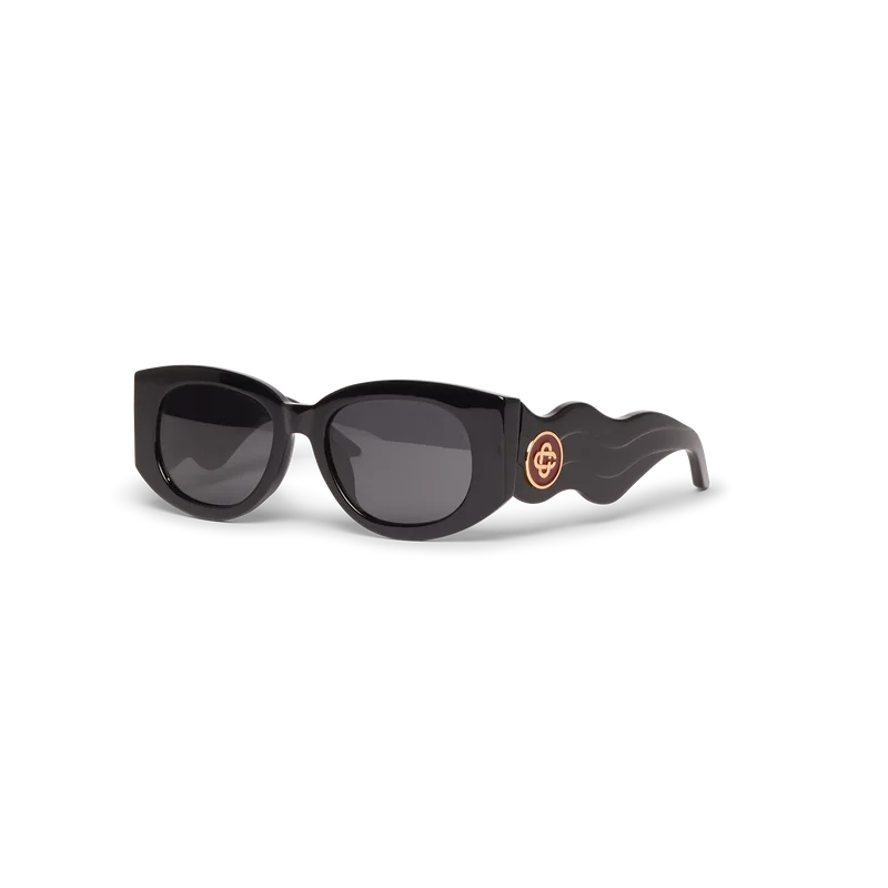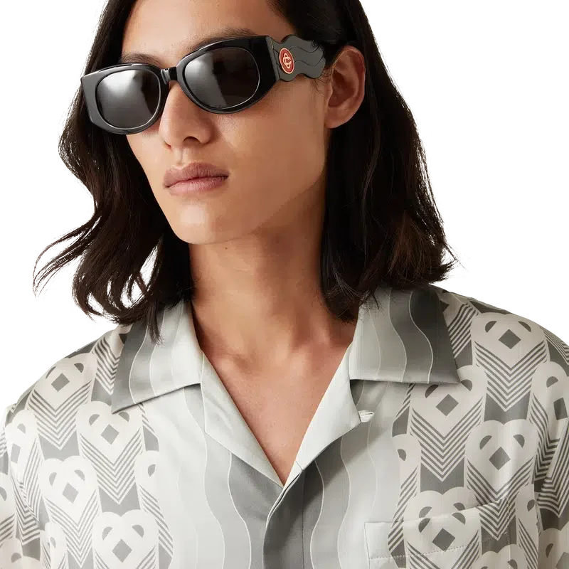 Den dristige, svarte acetatrammen til Memphis-solbrillene preger disse rektangulære solbrillene. Her er det karakteristiske Casablanca-Diamond Monogram-logoen plassert på brillestengene. De grå gradientglassene gir 100 % UV-beskyttelse, og modellen leveres komplett med gaveeske, rengjøringsklut og garantibrosjyre.