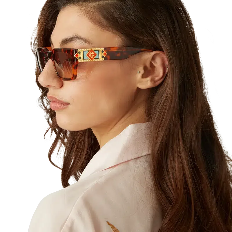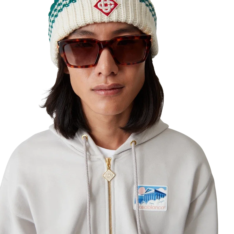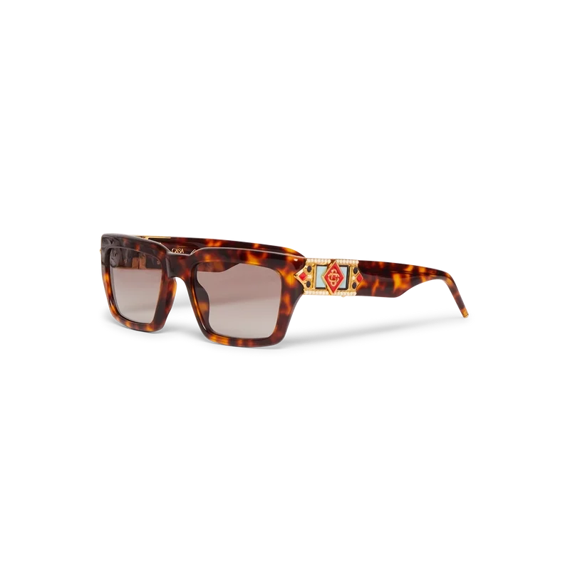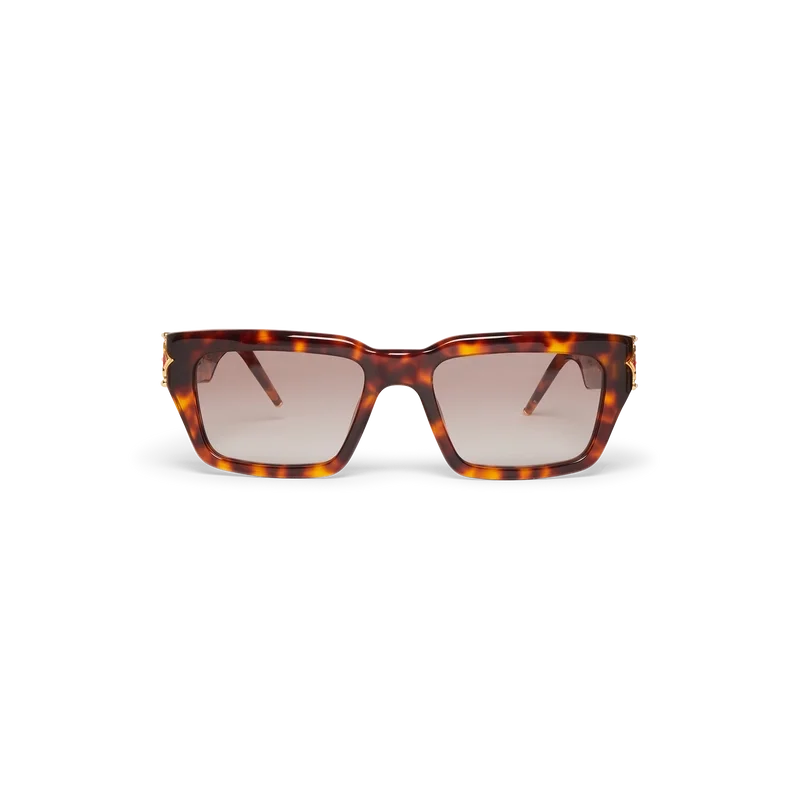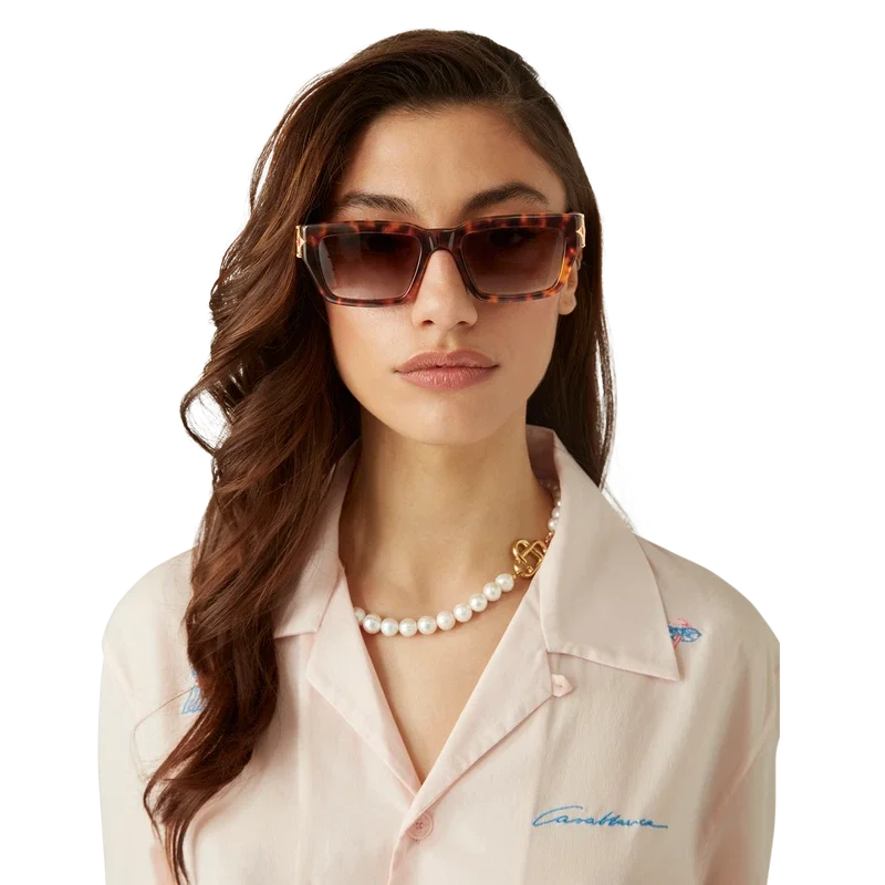 Tortoiseshell Square Metope-solbrillene har et firkantet design laget av acetat og gullbelagt messing. Her er det karakteristiske Casablanca-Diamond Monogram-logoen plassert på brillestengene. Linsene gir 100 % UV-beskyttelse, og modellen leveres komplett med en Casablanca-eske, rengjøringsklut og garantibrosjyre.
