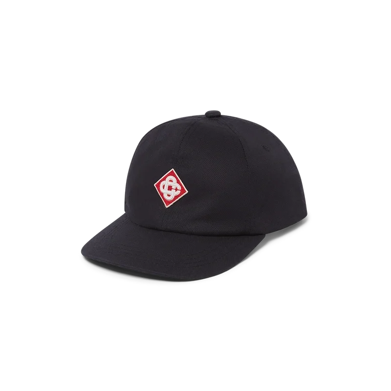 Logo-lue med logo-patch er en klassisk baseball-modell med husets diamantlogo i midten. Luen er laget av 100 % bomull og har en skygge, gullbelagt justerbar spenne og et Casablanca-merke.