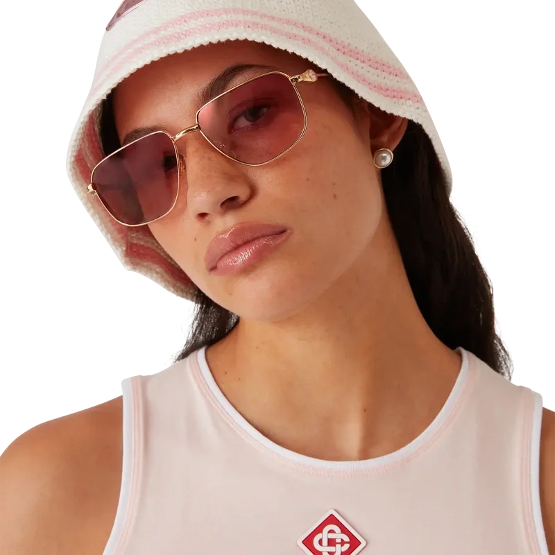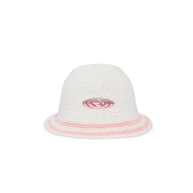 Bourgeoisie Girl heklet lue har en klassisk bøtteform, med et Casablanca-logo-merke som gir tekstur til det sportsinspirerte designet.