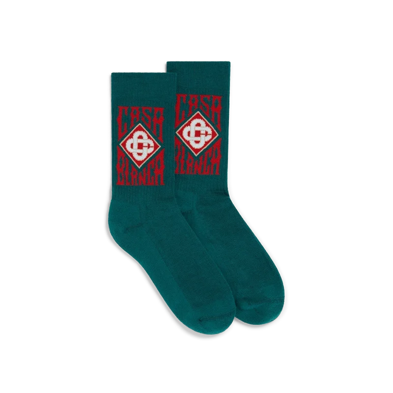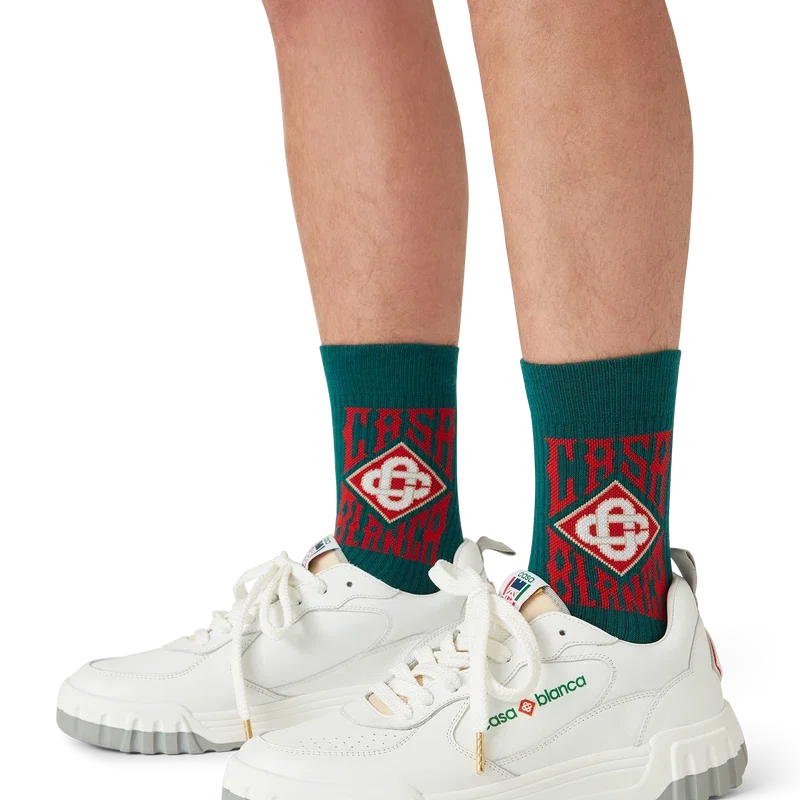 Gothic Logo-sokkene er laget av et bomullsblandingsstoff og har husets gotiske stablede logo. Fullført med ribbestrikkede ben.