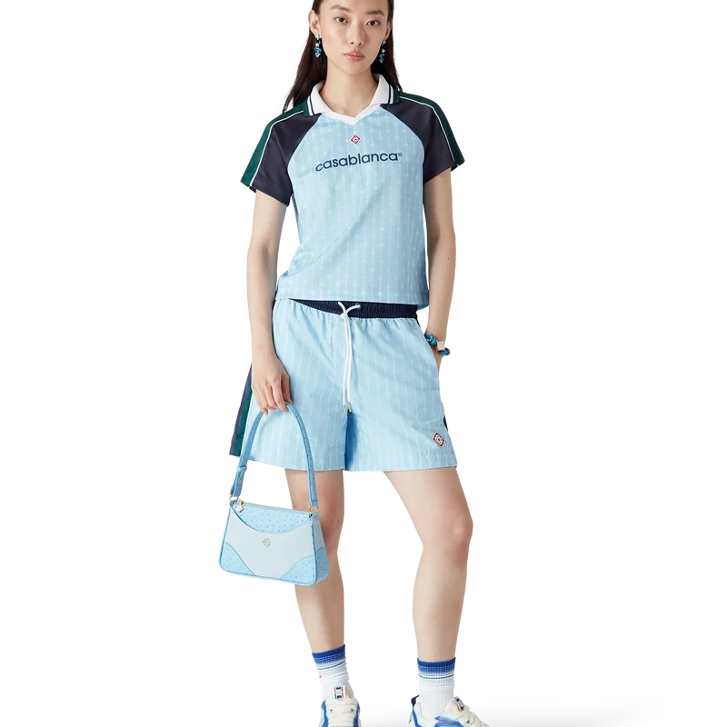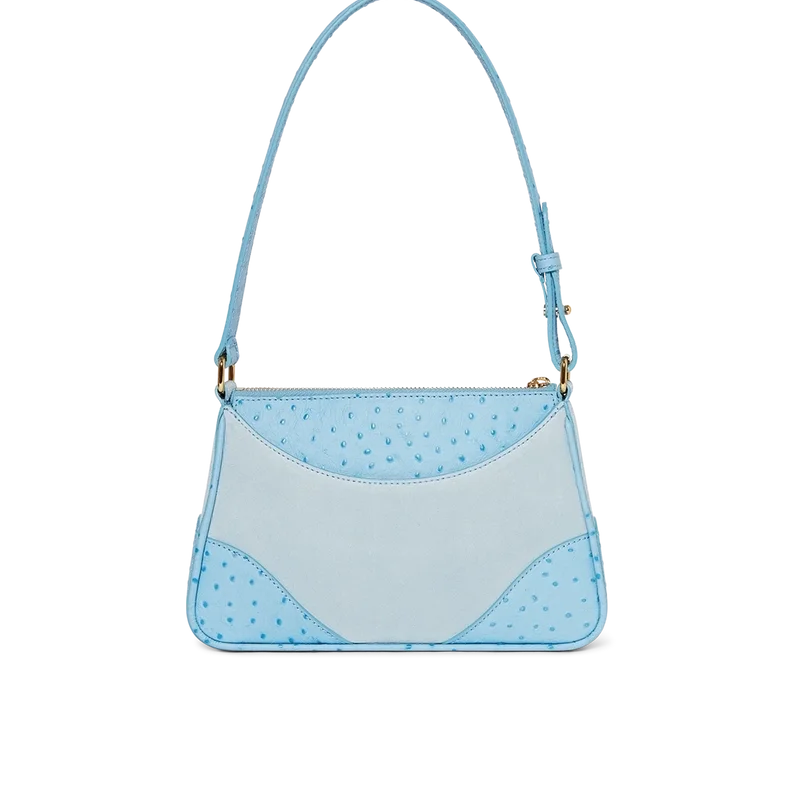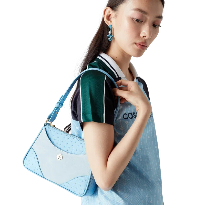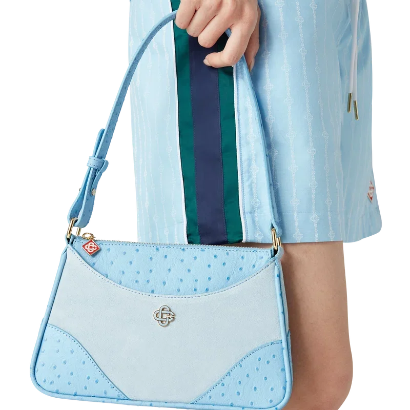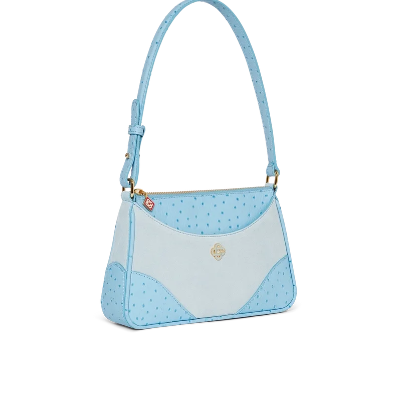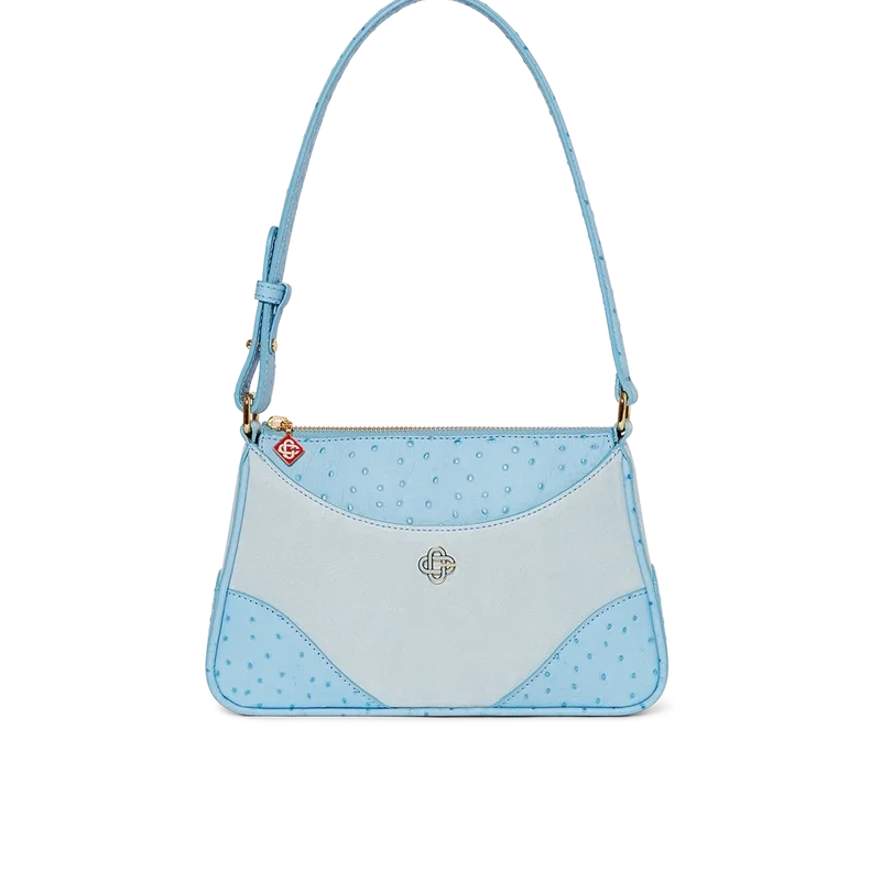 Den blå Jeanne Pouchette-skuldervesken er laget av italiensk kalveskinn og prydet med husets sammenflettede CC-logo på gullbelagte metallbeslag av høy kvalitet. Den har glidelåslukking øverst med husets røde Diamond Monogram, en skulderrem, to hovedrom, fôr i kanvas og en innvendig lomme. Leveres med en støvpose og eske med merke.