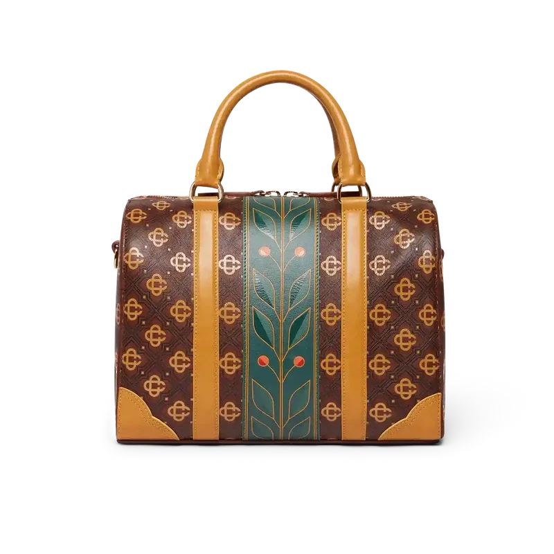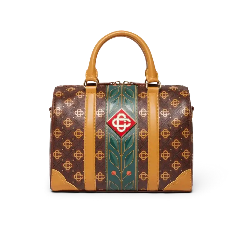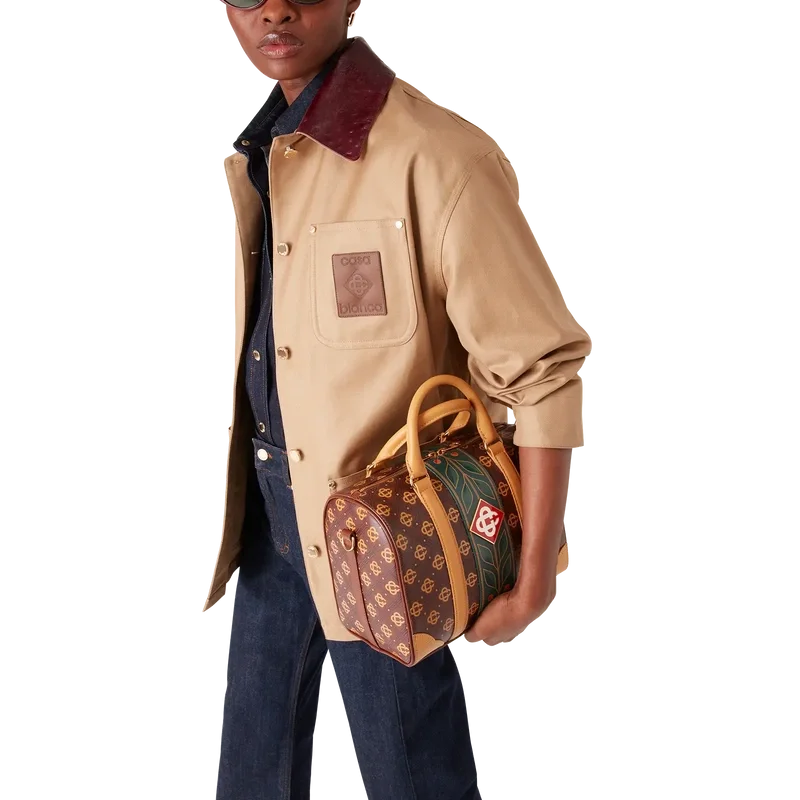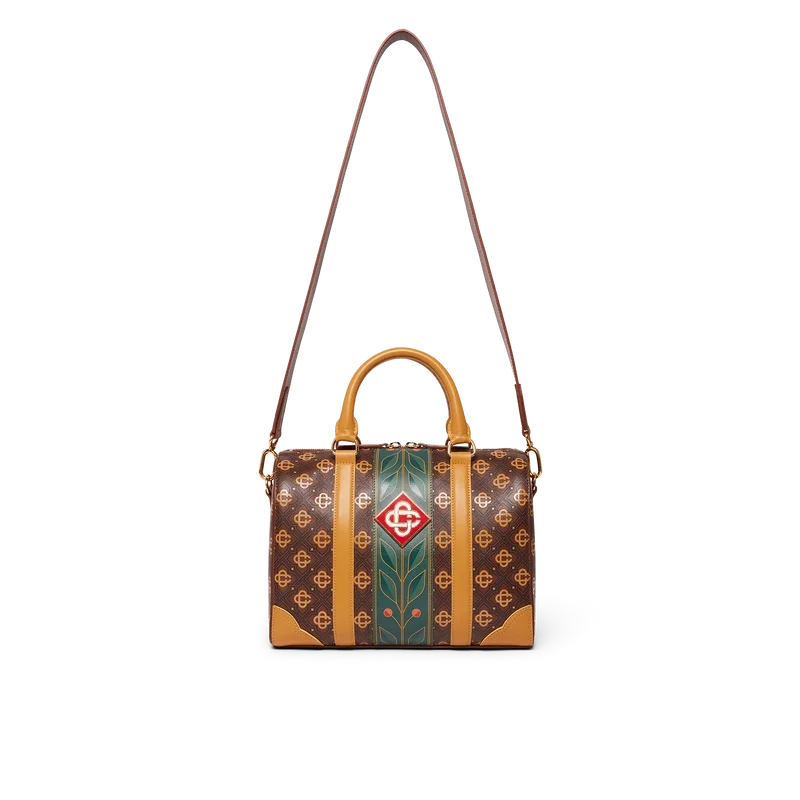Den brune Mini Monogram Weekend-vesken er laget av italiensk skinn og prydet med husets karakteristiske diamantlogo på siden. Den er utstyrt med husets karakteristiske laurbærmotiv, bærehåndtak, glidelåslukking, skulderrem og en innvendig lomme. Leveres med gaveeske, støvpose med merke og produktdetaljhåndbok.