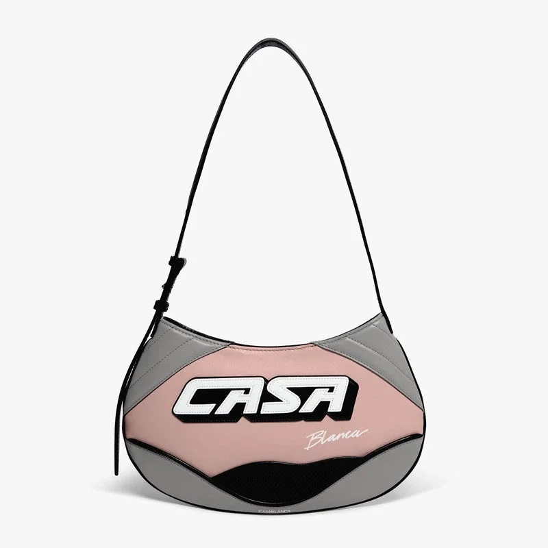 Den rosa, slanke biker-vesken er laget av skinn og har husets Casa-inskripsjon på forsiden. Komplett med skulderrem, glidelåslukking, kontrastpiping, sølvbelagte metallbeslag og en elegant silhuett designet for uanstrengt hverdagsbruk. Leveres med gaveeske, støvpose med merke og produktbrosjyre.