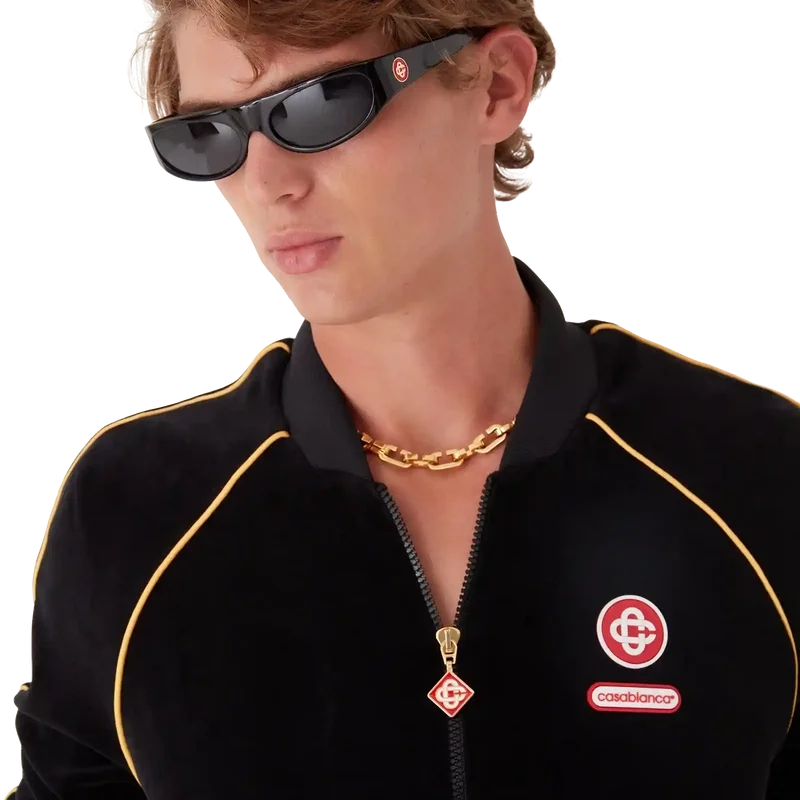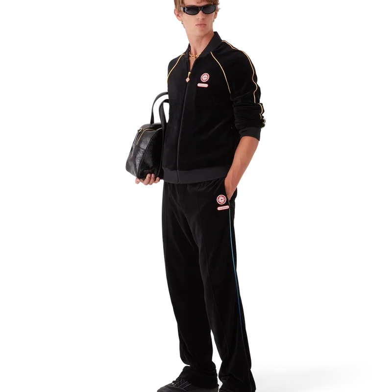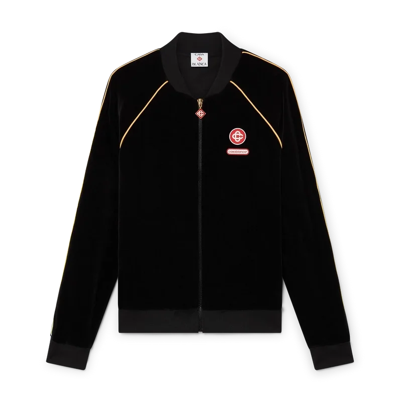 Velour-treningsjakken med gradientpiping er en langermet modell med husets sammenflettede CC-logo og Casablanca-logopatch.
