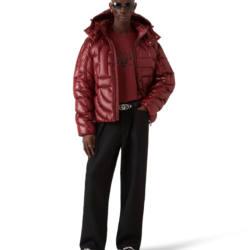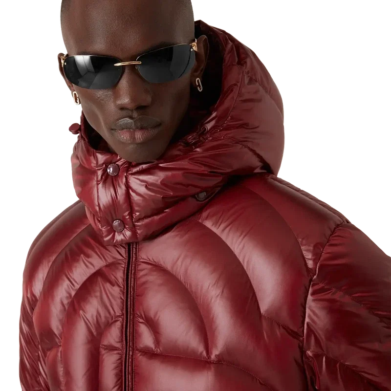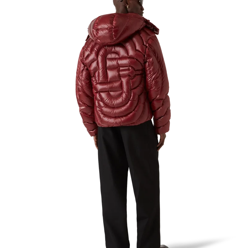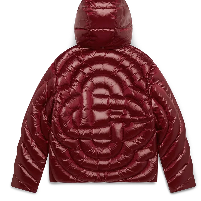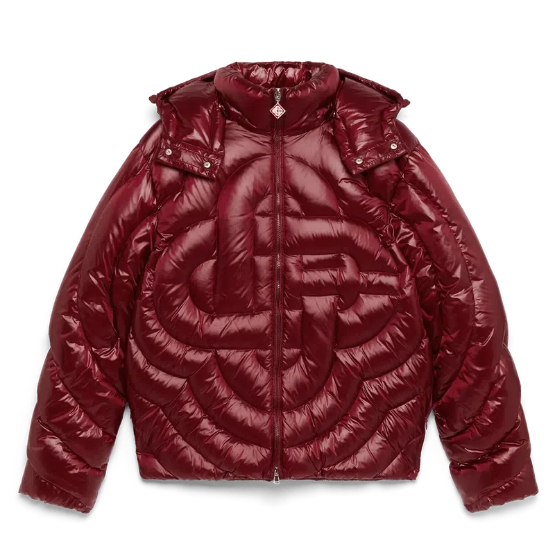 Den vatterte pufferjakken er et raffinert yttertøydesign med husets karakteristiske Diamond Monogram foran og bak, laget av vattert stoff med dunfyll, med en langermet silhuett. Den har avtakbar hette, glidelåslukking med glidelåstapp med det karakteristiske diamantlogoen, sidelommer i sømmen, en ermelomme, elastiske justerbare stropper i nederkant og på hetten med sammenkoblede Cc-logo-knapper, samt mansjetter med Casablanca-merketape.